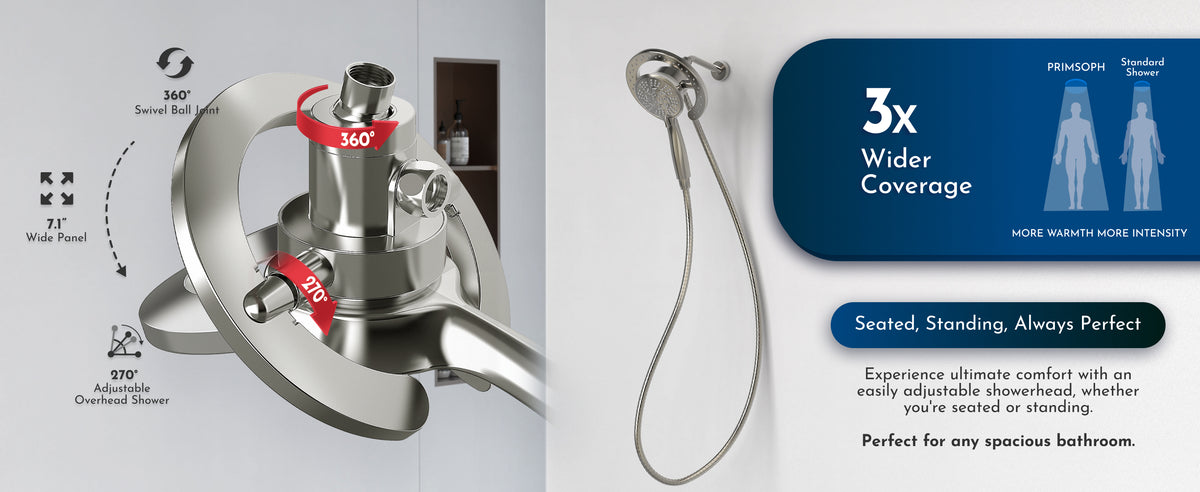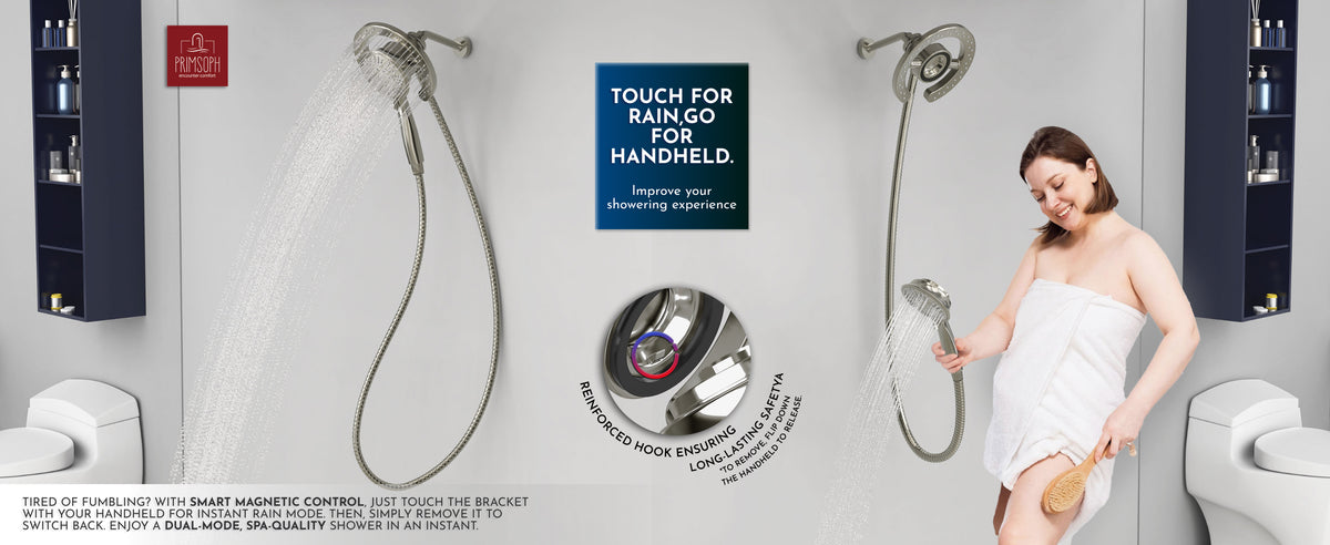 • Patented Magnetic Docking System: Switch effortlessly between handheld and rainfall modes by simply touching the overhead bracket. The patented magnetic control ensures a secure, reliable dock every time. Enjoy the luxury of a 2-in-1 shower system without the hassle of traditional dual showerheads. cUPC certified for safety and durability.