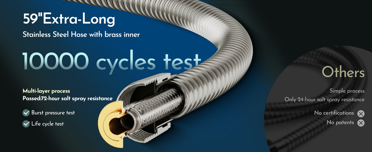 • Versatile & User-Friendly Design: Featuring a dual 360° adjustable overhead bracket and an extra-long 59-inch stainless steel hose, you can easily reach every corner of your shower. The low-reach wall bracket makes this shower head perfect for children and the elderly, providing a tailored experience for every family member.