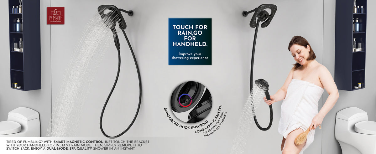 • Patented Magnetic Docking System: Switch effortlessly between handheld and rainfall modes by simply touching the overhead bracket. The patented magnetic control ensures a secure, reliable dock every time. Enjoy the luxury of a 2-in-1 shower system without the hassle of traditional dual showerheads. cUPC certified for safety and durability.