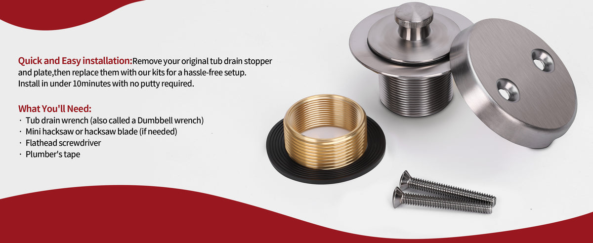 • 【Upgraded Bathtub Drain Set】: This set includes a Lift Turn bathtub drain and a two-hole overflow plate, providing a stylish and effortless replacement for your problematic bathtub drain.