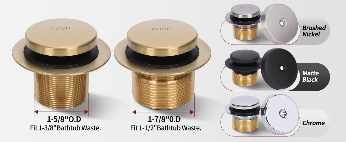 • 【Easy to use】: The push-sensitive mechanism is ideal for seniors and children. A gentle toe touch easily opens or closes the bathtub drain, keeping hands free and making operation effortless.