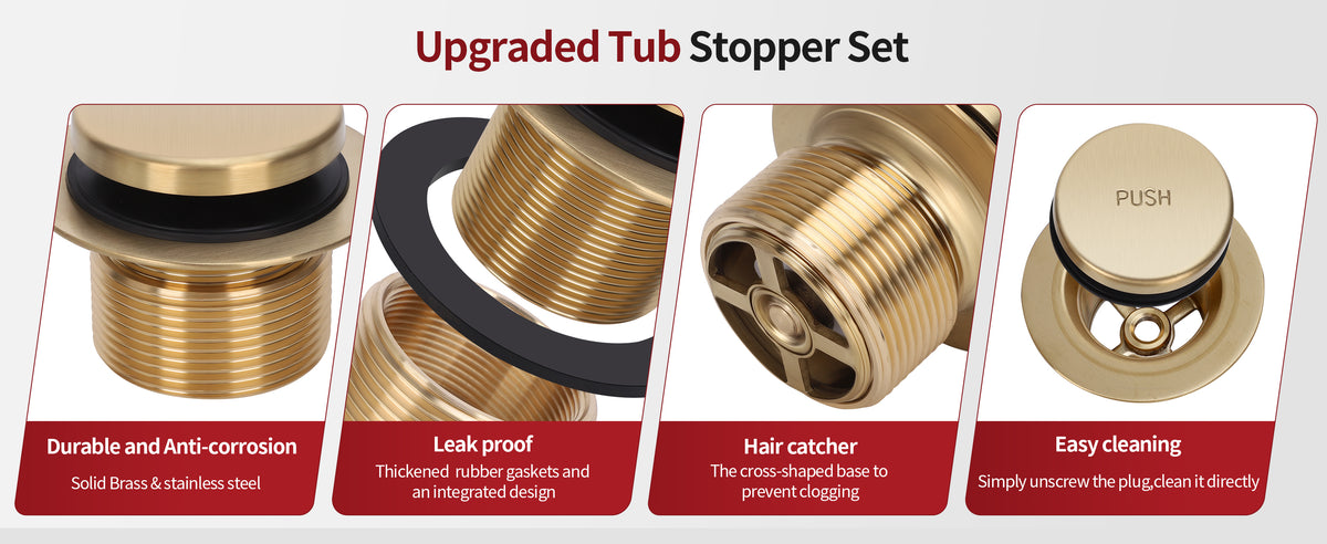 • 【Durable】: Expertly crafted from robust brass and stainless steel, our tub drain kits offer high strength and durability for long-term use in wet environments. Thickened rubber gaskets minimize the risk of leaks.Unscrew the plug for straightforward cleaning.