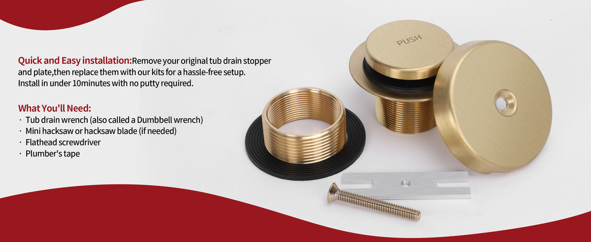 • 【Upgraded Bathtub Drain Set】: This set includes a tip-toe bathtub drain and a one-hole overflow plate, providing a stylish and effortless replacement for your problematic bathtub drain.
