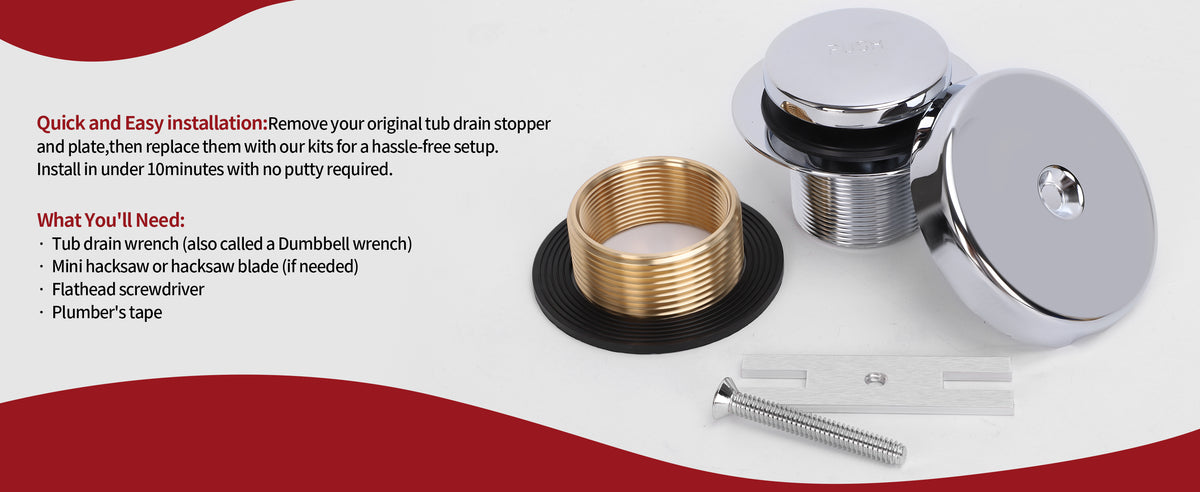 • 【Upgraded Bathtub Drain Set】: This set includes a tip-toe bathtub drain and a one-hole overflow plate, providing a stylish and effortless replacement for your problematic bathtub drain.