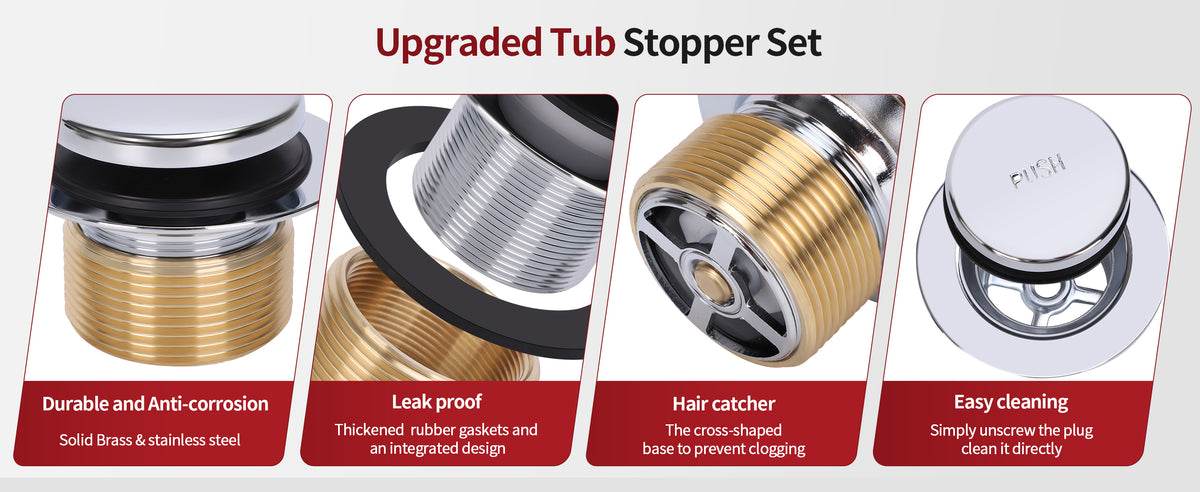 •  【Durable】: Expertly crafted from robust brass and stainless steel, our tub drain kits offer high strength and durability for long-term use in wet environments. Thickened rubber gaskets minimize the risk of leaks. Unscrew the plug for straightforward cleaning.
