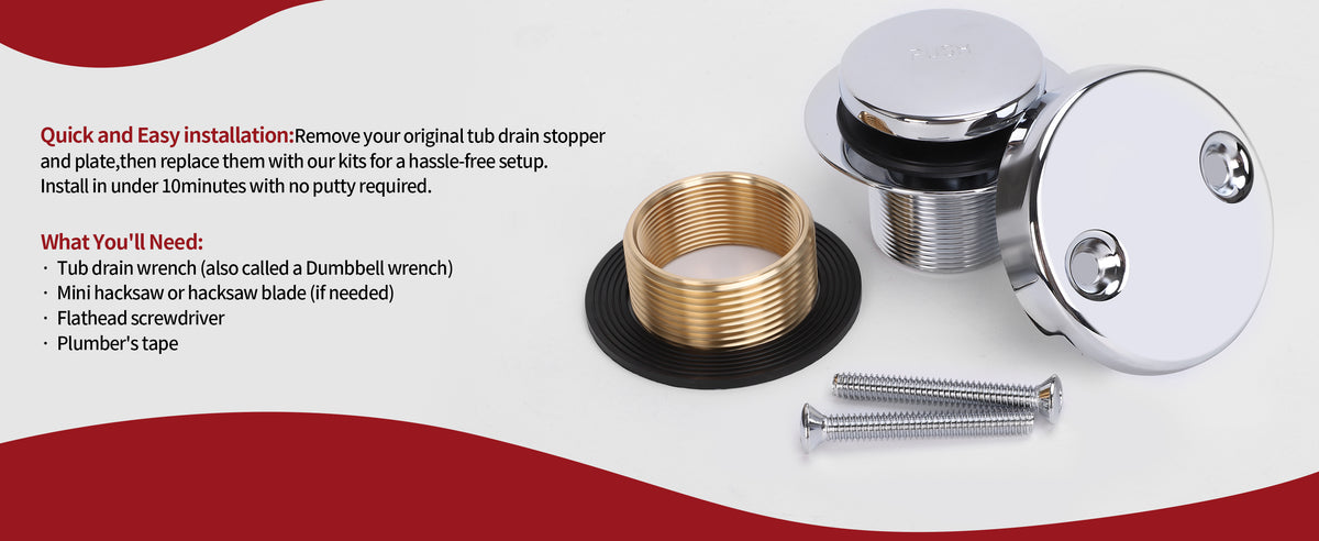 • 【Upgraded Bathtub Drain Set】: This set includes a tip-toe bathtub drain and a two-hole overflow plate, providing a stylish and effortless replacement for your problematic bathtub drain.