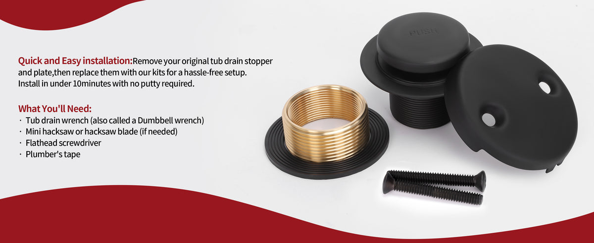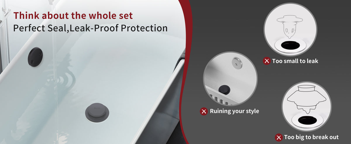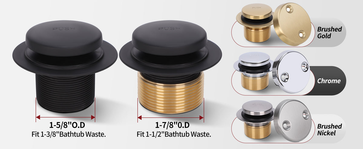 • 【Upgraded Bathtub Drain Set】: This set includes a tip-toe bathtub drain and a two-hole overflow plate, providing a stylish and effortless replacement for your problematic bathtub drain.