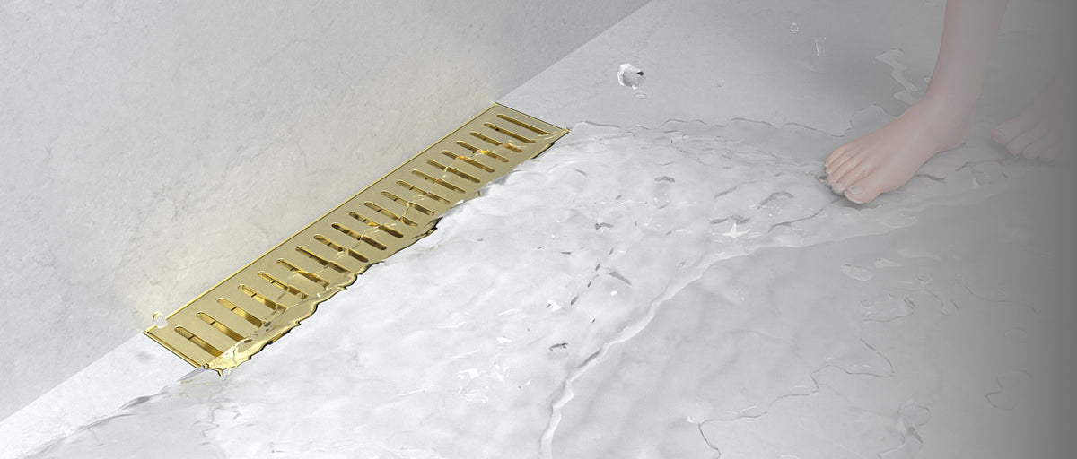 WEBANG 12 Inch Capsule Pattern Linear Shower Drain With Accessories, Brushed Gold Sale price$59.99