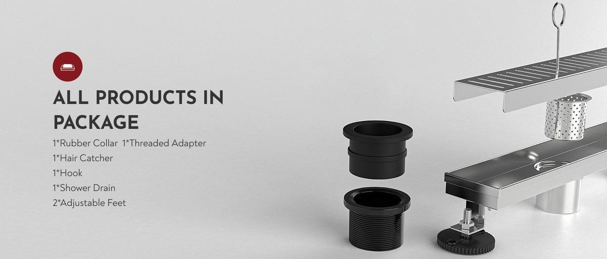 With its 12-inch length, this linear shower drain is perfect for larger shower spaces, and its included accessories make installation a breeze. The drain comes with a hair strainer to prevent clogging and a rubber coupler to ensure a leak-free connection.
