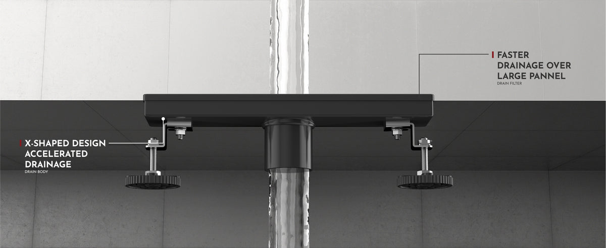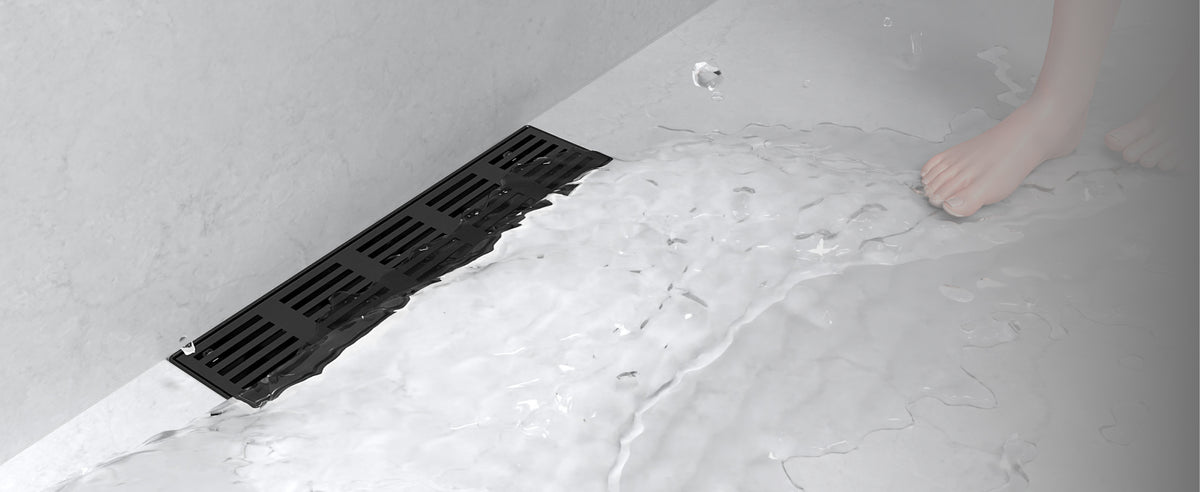 The WEBANG 12-Inch Fence Pattern Linear Shower Drain – Matte Black integrates seamlessly with standard US NO HUB Drain Base Systems. Featuring a 2" central outlet, it delivers powerful drainage at 5.28–6.6 gallons per minute. The precision-engineered fence grate design effectively filters out hair and debris, ensuring clog-free performance and a consistently dry, clean shower space.