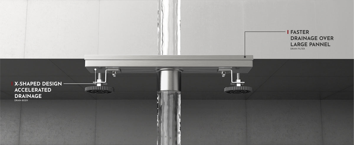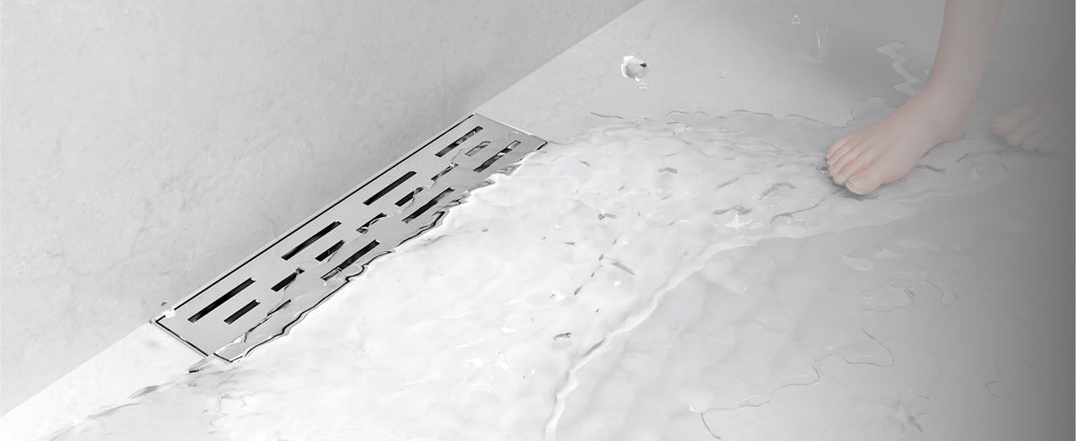 The WEBANG 12-Inch Rainline Pattern Linear Shower Drain – Brushed Stainless Steel integrates seamlessly with standard US NO HUB Drain Base Systems. Featuring a 2" central outlet, it delivers powerful drainage at 5.28–6.6 gallons per minute. The precision-engineered rainline grate design effectively filters out hair and debris, ensuring clog-free performance and a consistently dry, clean shower space.