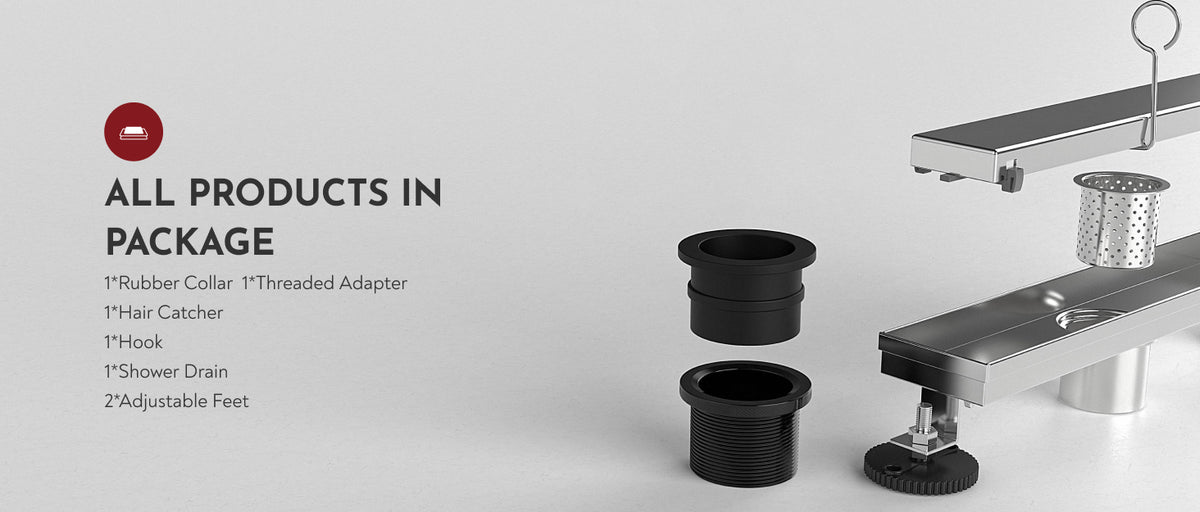 The drain comes with all necessary accessories for installation, including a hair strainer to prevent clogging and a rubber coupler to ensure a leak-free connection. Its 12-inch length makes it perfect for larger shower spaces, while its durable and corrosion-resistant construction ensures it will last for years to come.