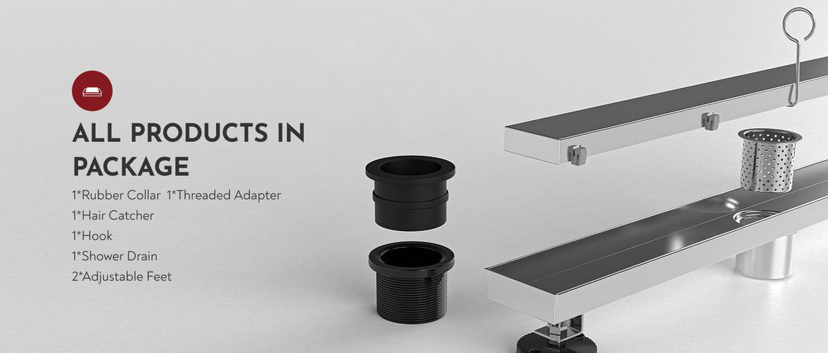 The drain comes with all necessary accessories for installation, including a hair strainer to prevent clogging and a rubber coupler to ensure a leak-free connection. Its 24-inch length makes it perfect for larger shower spaces, while its durable and corrosion-resistant construction ensures it will last for years to come.