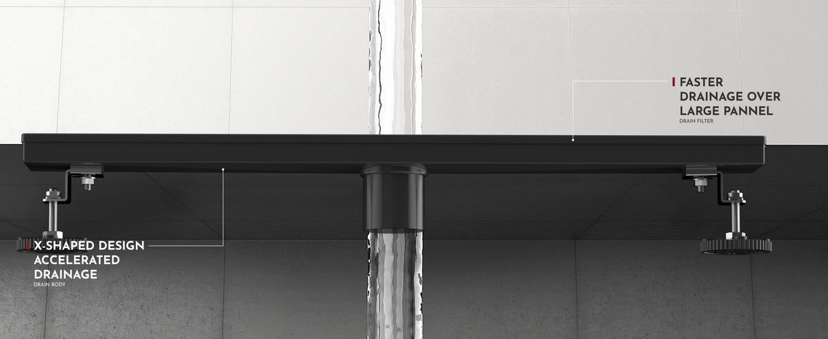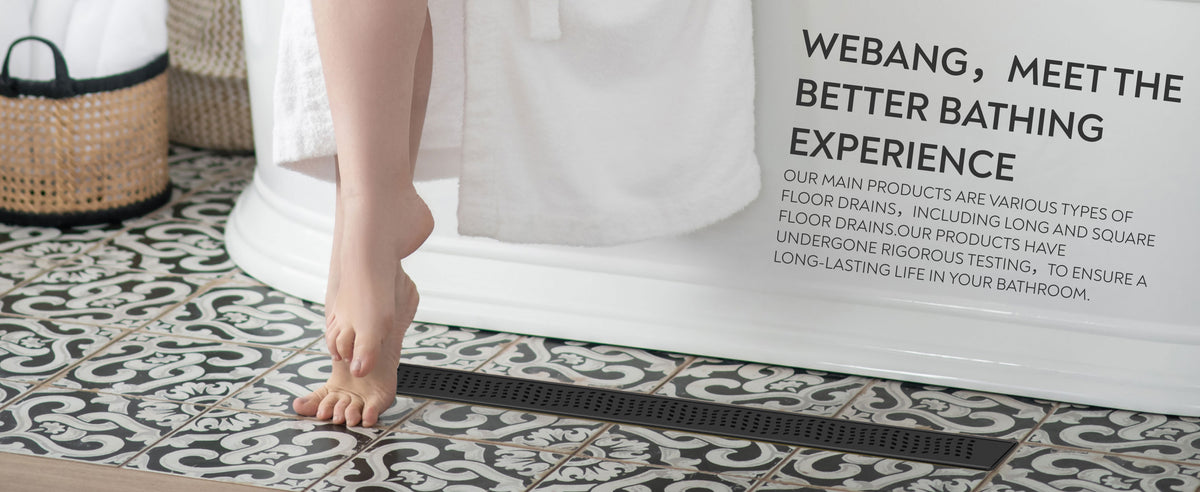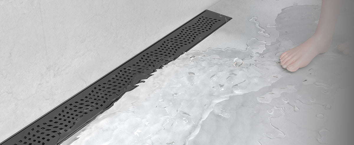 The WEBANG 24-Inch Wave-Hole Pattern Linear Shower Drain – Matte Black integrates seamlessly with standard US NO HUB Drain Base Systems. Featuring a 2" central outlet, it delivers powerful drainage at 5.28–6.6 gallons per minute. The precision-engineered wave-hole grate design effectively filters out hair and debris, ensuring clog-free performance and a consistently dry, clean shower space.