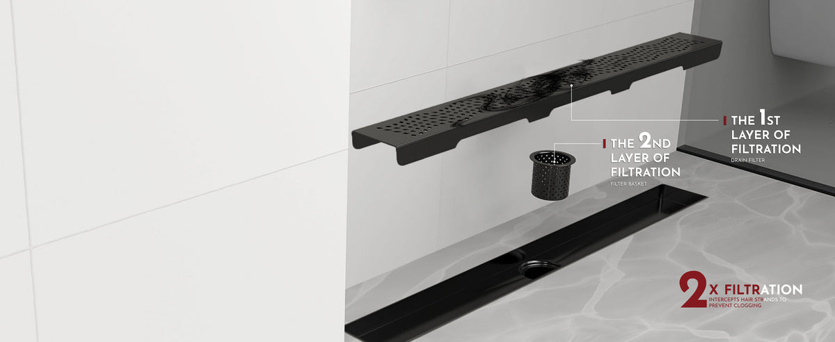 Crafted from durable SUS304 stainless steel and finished in elegant matte black, this drain offers superior corrosion and oxidation resistance. The luxurious finish adds a modern, upscale touch to any bathroom.