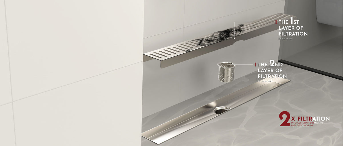 With its 36-inch length, this linear shower drain is perfect for larger shower spaces, and its included accessories make installation a breeze. The drain comes with a hair strainer to prevent clogging and a rubber coupler to ensure a leak-free connection.