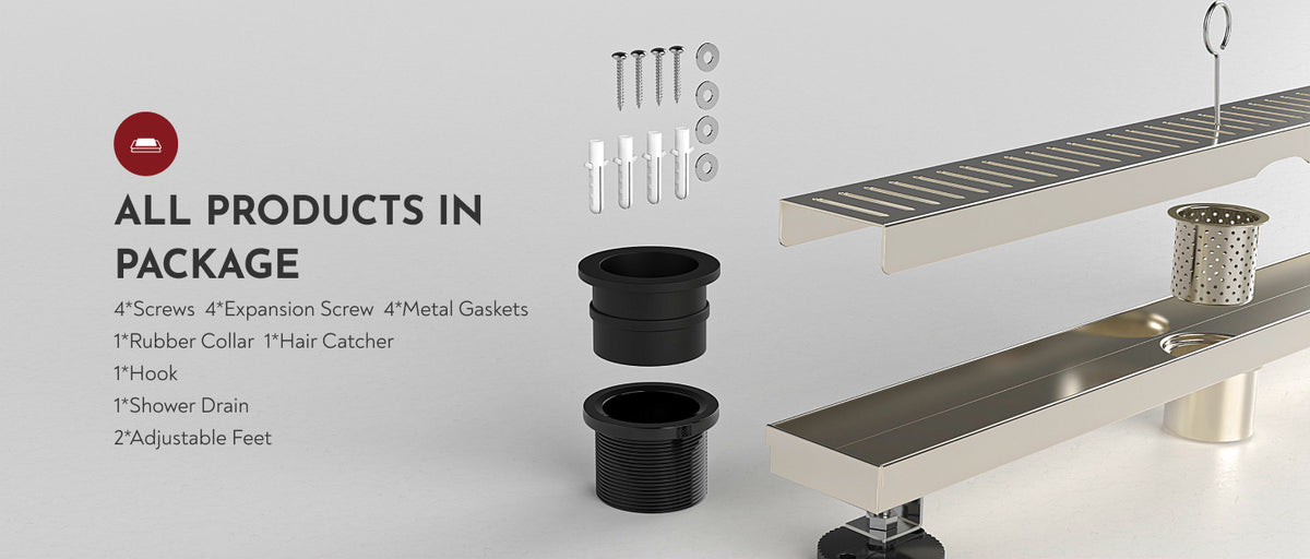 Please note that the product images and models for linear drains larger than 24 inches do not reflect the actual size. The images and models displayed are based on the 24-inch version. We strongly recommend referring to the actual size measurements provided when making your purchase.