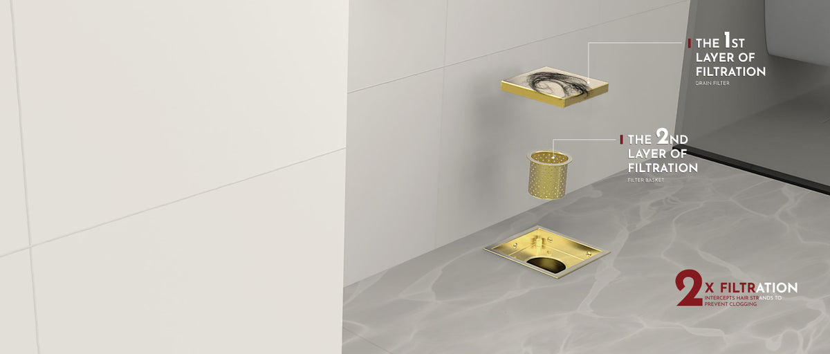 Webang 4 Inch Wide Frame Reversible 2-in-1 Tile-In Square Shower Drain with Flange, Brushed Gold is a versatile and efficient drain solution for your modern bathroom. This shower drain features a unique design that can be flipped over to reveal either a stainless steel or tile-insert surface, making it a perfect choice for a range of shower installations.