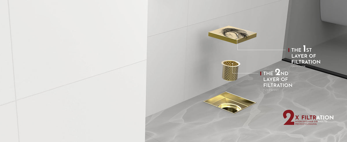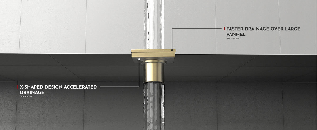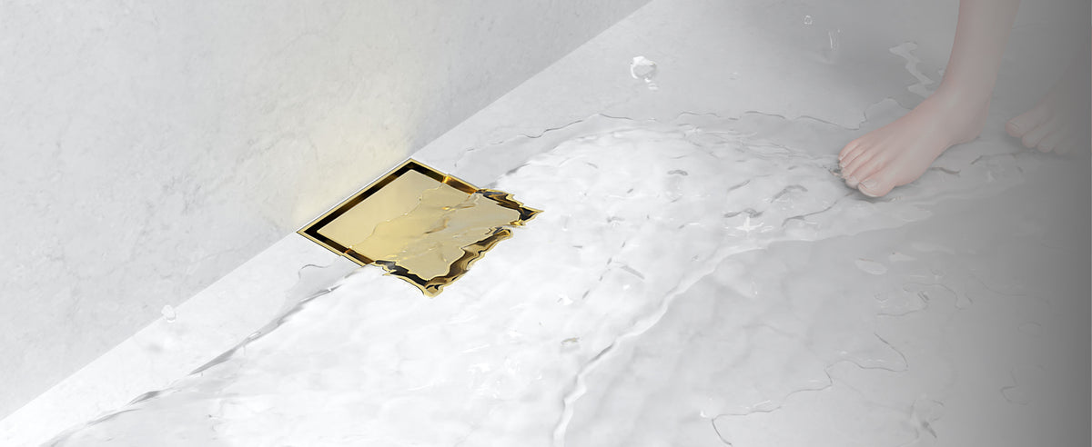 Webang 4 Inch Reversible 2-in-1 Tile-In Square Shower Drain with Flange, Brushed Gold is a versatile and efficient drain solution for your modern bathroom. This shower drain features a unique design that can be flipped over to reveal either a stainless steel or tile-embeddable surface, making it a perfect choice for a range of shower installations.