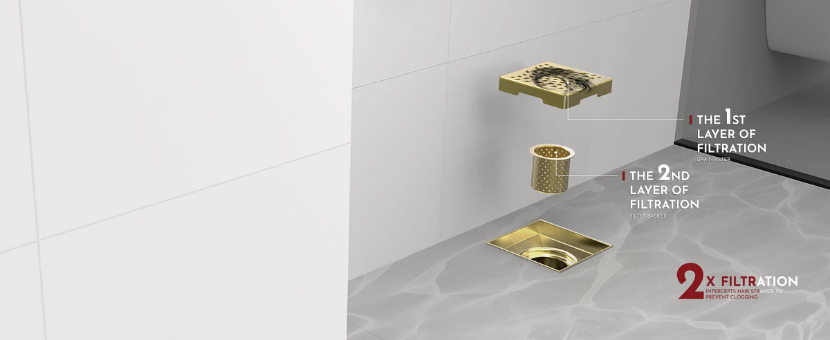 Crafted from durable SUS304 stainless steel and finished in elegant brushed gold, this drain offers superior corrosion and oxidation resistance. The luxurious finish adds a modern, upscale touch to any bathroom.
