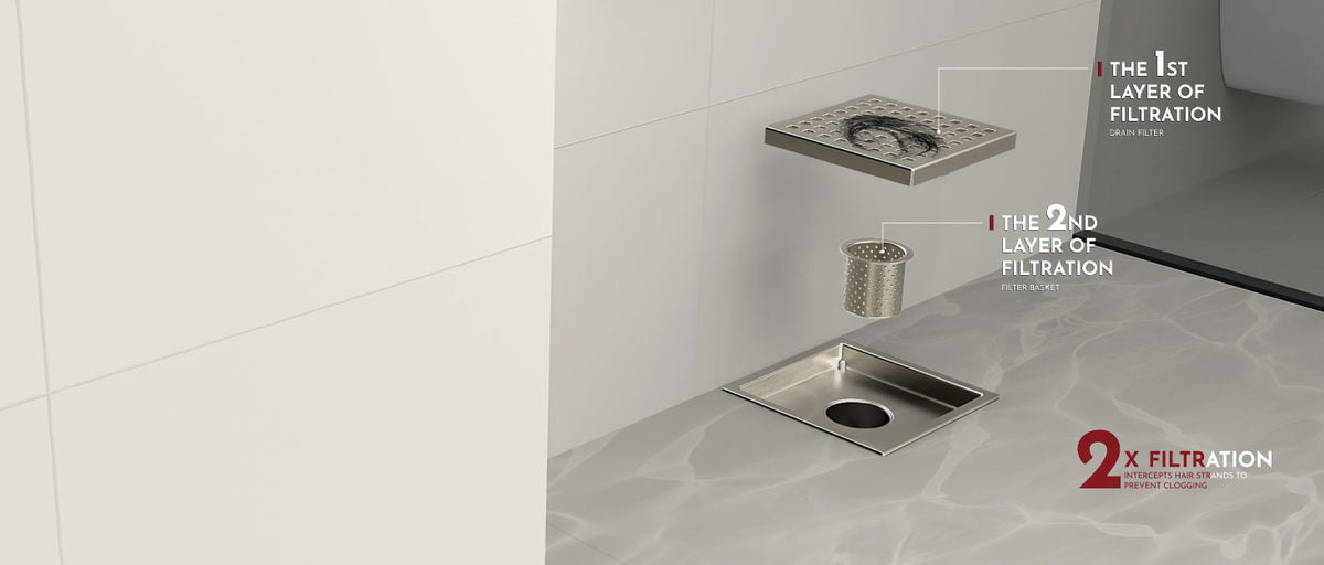 The 6-inch size of this shower drain makes it a perfect fit for most standard shower installations. It's made of durable and corrosion-resistant stainless steel, ensuring that it can withstand the high moisture and water flow of any shower. Additionally, the drain comes with a hair strainer to prevent clogging and a waterproofing membrane to ensure a leak-free connection during installation.